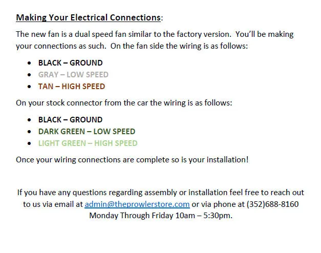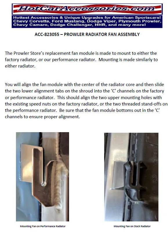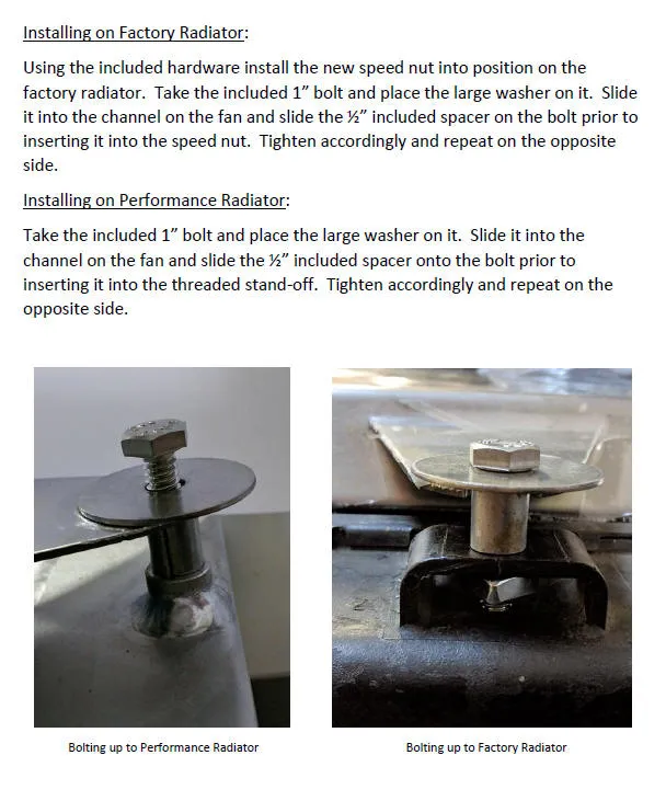 Since the factory replacement fan and shroud are no longer available, we have developed a new and improved version. Featuring a dual-speed 17″ S-blade fan for quiet operation, our stainless steel-mounted assembly is the perfect fit to get you back on the road. It works with either the factory radiator or our performance all-aluminum radiator. Installation requires minor wiring modifications to the factory pigtail. If you are not comfortable with light electrical work, we recommend professional installation.