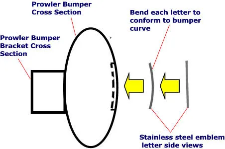 - Once your indented letters are dry, begin forming the letters one at a time. NOTE: Do not remove the backing of the letters until instructed to do so. To hand-bend each letter, take the first letter and set it into its corresponding indented letter on the bumper (for example, start with the “P” in “Prowler”). Examine how it fits. Carefully bend the letter by hand to match the curve of your bumper. This is a process of trial and error. When finished, each letter should lie on and conform to the bumper exactly. NOTE: The short letters may not require any bending.