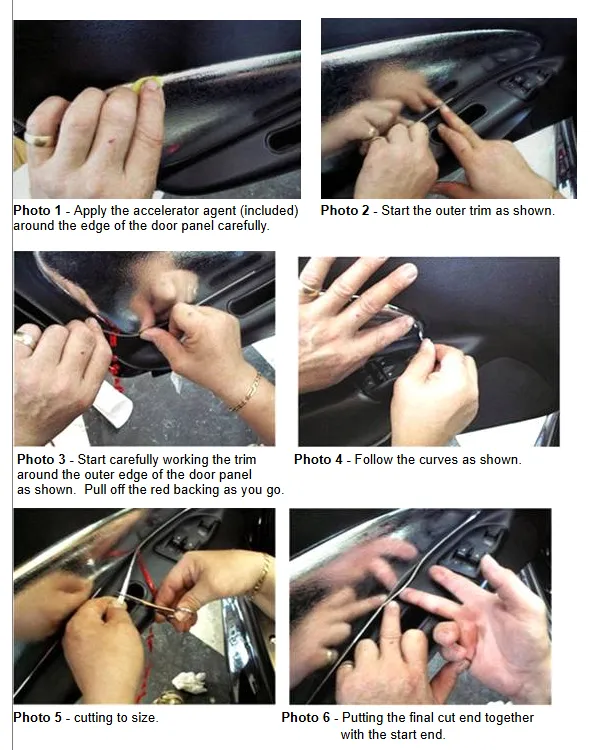 Note: You must thoroughly clean the interior areas where you will apply the trim. The trim will not stick to oily, dirty, or Armor-All treated surfaces.