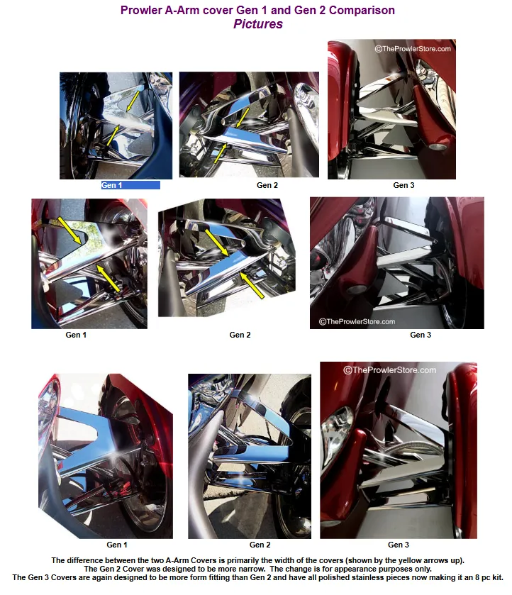 Start with the Lower A-Arm Covers: Your new covers are designed to set into position, although depending on the Prowler and the individual part, the fit may be a little loose. This is normal — simply center the piece on the A-Arm. There will be a small gap between the edge of the cover and the A-Arm itself.