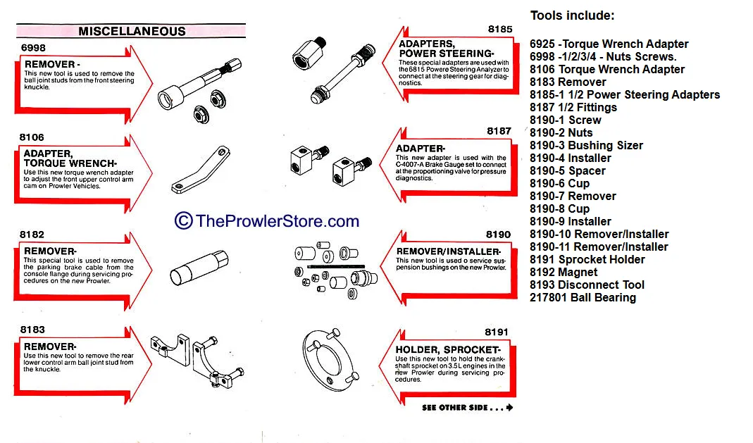 Used – complete in like-new condition. Official Chrysler-approved complete tool kit. Specifically for the Plymouth Prowler suspension system.