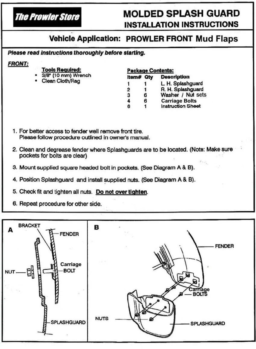 Prowler Factory Style Front Mud Flaps. Redesigned to be about 2.75″ shorter than original! (2 X Front)