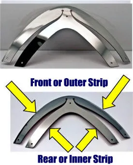 4. Once you are confident of how the part will fit, peel the rear red release liner off. Set the rear section right along the back edge of the chin (see Diagram B) and press firmly — ONLY along the back stainless strip — to set. DO NOT attach the front stainless strip yet (see Diagram A).